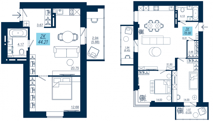 Смотрите все планировки на сайте и бронируйте лучшее для Вас в отделе продаж: 219-17-10