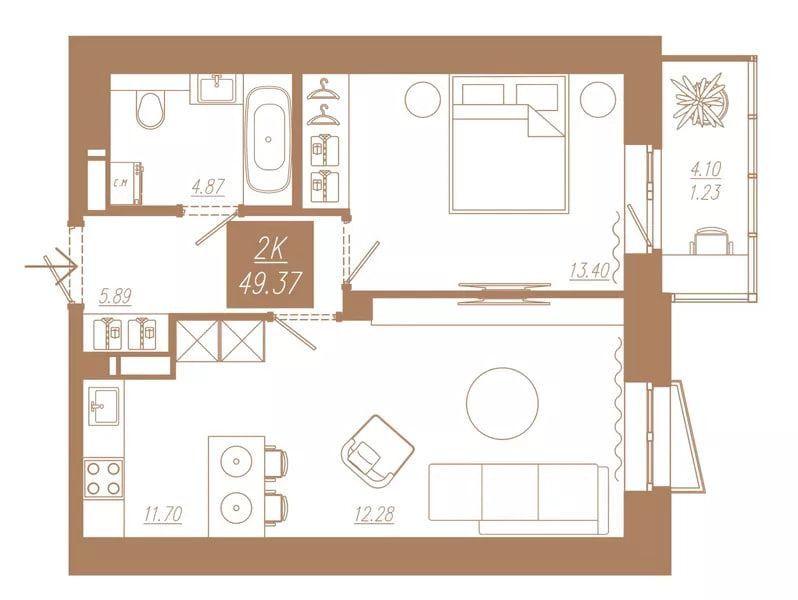 Компактная 2-комнатная с кухней-гостиной и французским балконом. Прихожая 5,89 м2 имеет простенок для установки встроенного шкафа. Отдельная спальня 13,4 м2 с пространством для шкафа и окном с выходом на балкон. Гостиная площадью 24 м2 имеет кухню-нишу и французский балкон, который будет утопать в цветах. Почему бы в каждое красноярское утро не добавить немного Парижа?