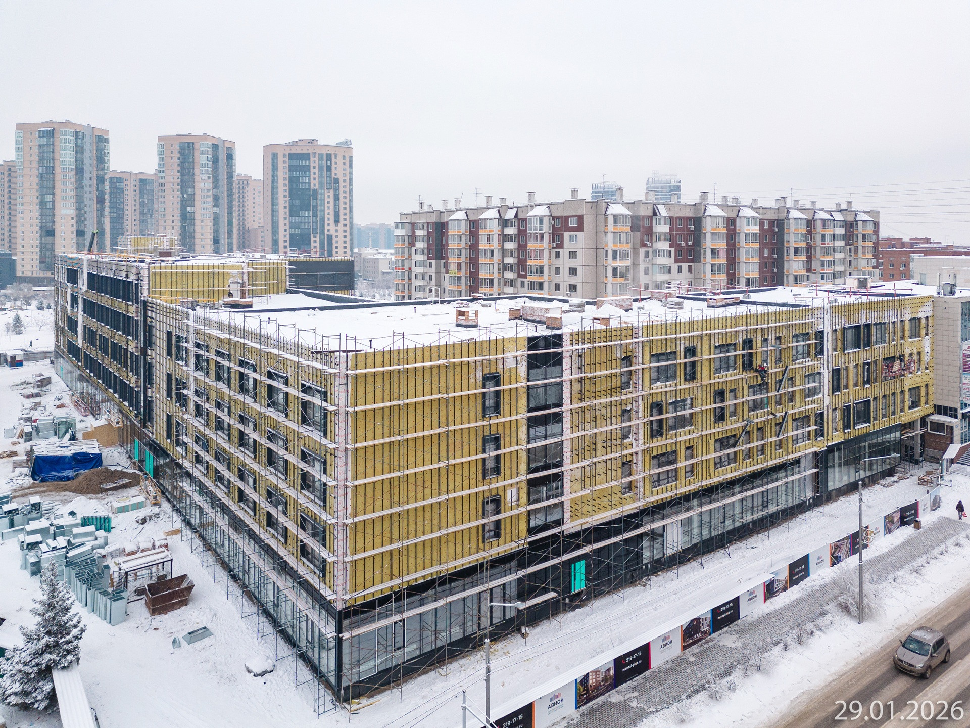 Здание будет состоять из торговой части на 1-2 этажах и офисного центра на 2-5 этажах. Торговый центр расположится ближе к ул. 78 Добровольческой бригады. Офисный центр расположится ближе к парку 400-летия Красноярска. Благодаря такой локации, "АВИОН" станет центром притяжения аудитории и новых привлекательных бизнес-проектов. В продаже магазины в торговых галереях на 1- и 2-м этаже, а также офисы различного формата - с прозрачной крышей, собственной мокрой точкой, выходом на террасу. Предусмотрены помещения под конференц-зал и кафе.